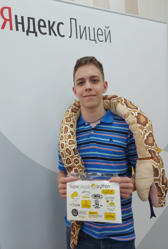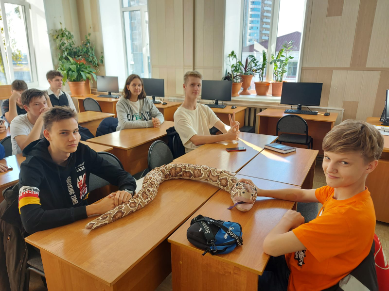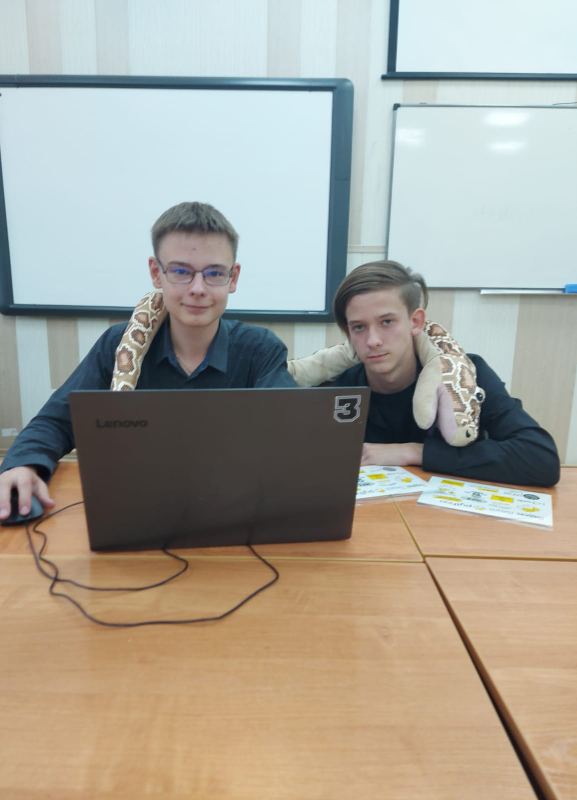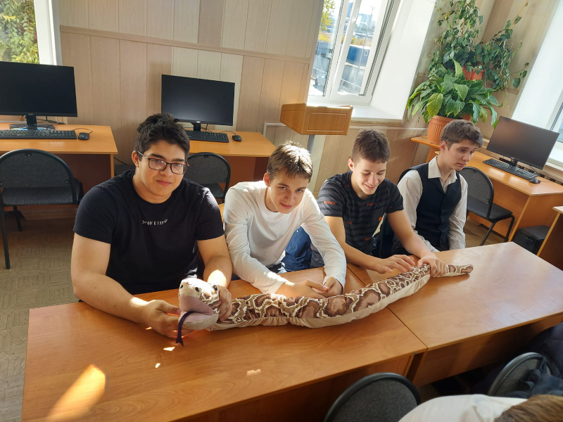 В 231 аудитории, где проходят занятия, появился новый питомец – игрушечный символ изучаемого языка программирования. Ребята уже дали ему имя – Алан. Питон Алан – подарок выпускника Детского научно-образовательного центра БГПУ, многократного финалиста, призёра и победителя различных олимпиад Дарагана Егора. Именно с глубокого изучения языка Python и опыта его применения в различных проектах начался путь Егора в будущую профессию.