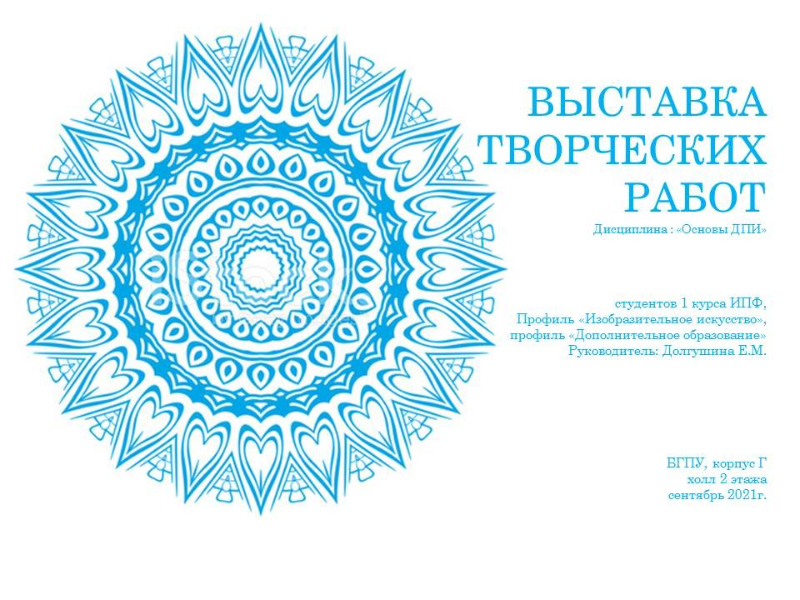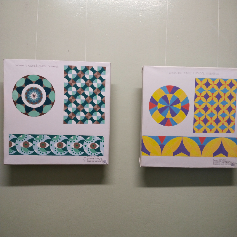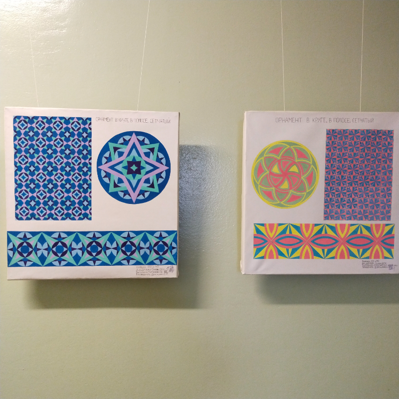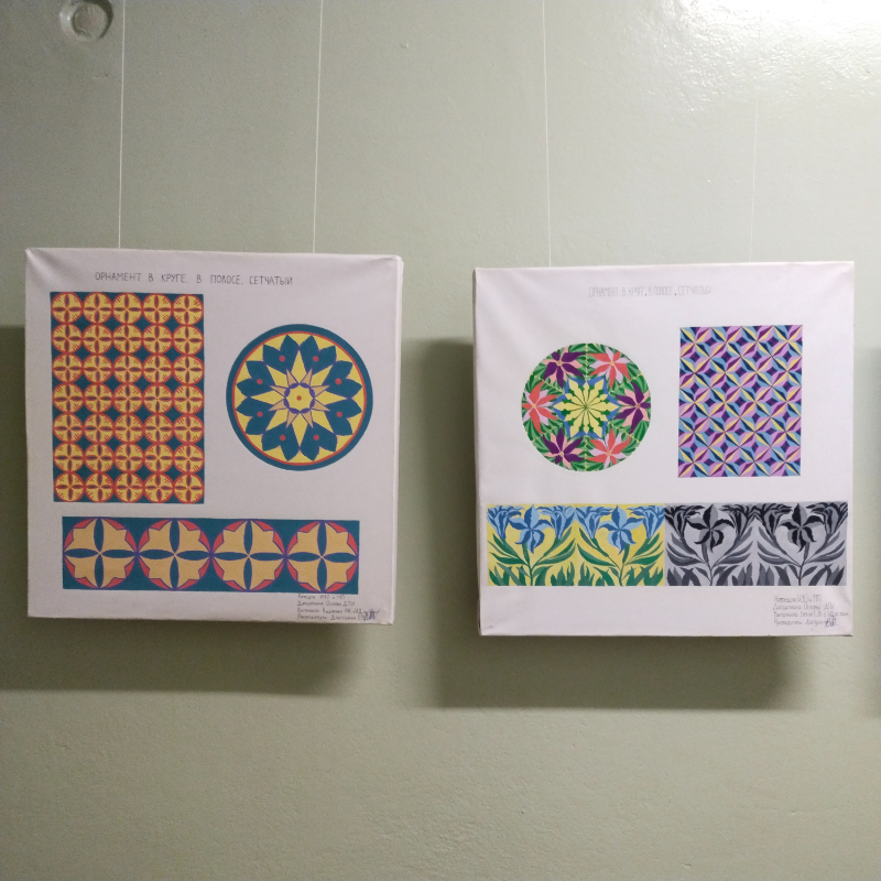 На индустриально-педагогическом факультете отрылась выставка творческих работ студентов 1 курса дисциплина «Основа ДПИ», профиль «Изобразительное искусство», профиль «Дополнительное образование». На выставке представлены работы на тему «Орнамент» выполнены на планшетах 50х50.