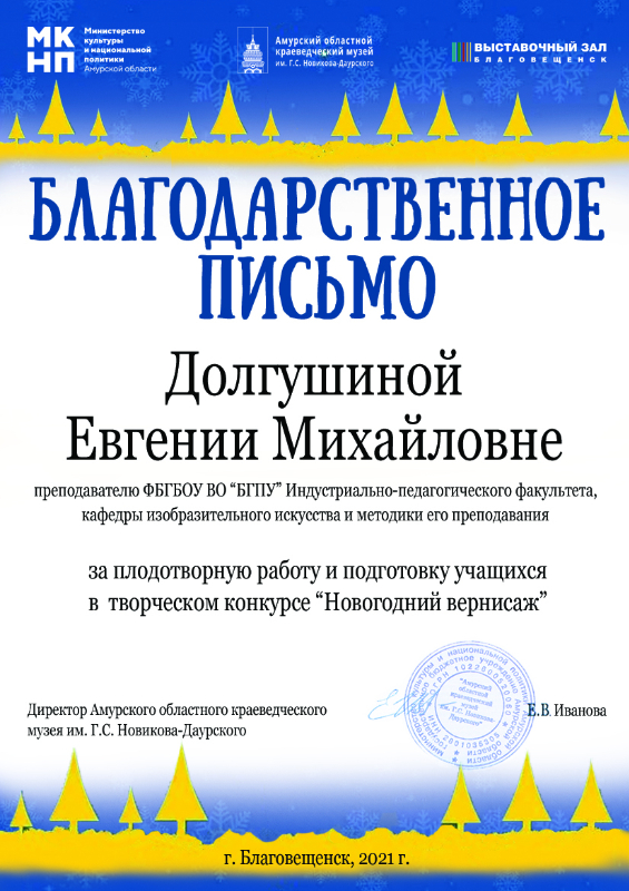 Г.С. Новикова-Даурского» в г. Благовещенск - «Выставочный зал». Конкурс