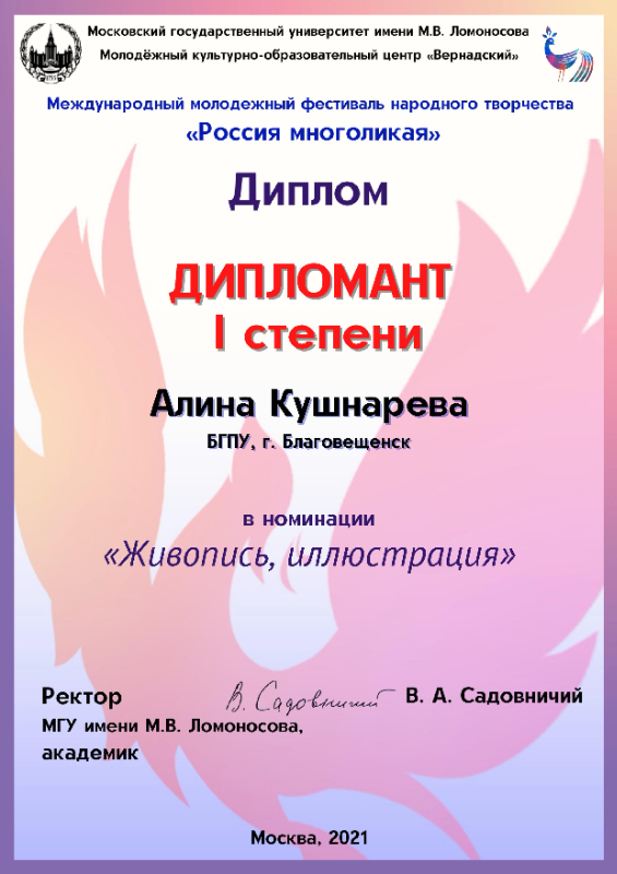Кушнарева Алина 4 курс, ДИПЛОМАТ 1 СТЕПЕНИ