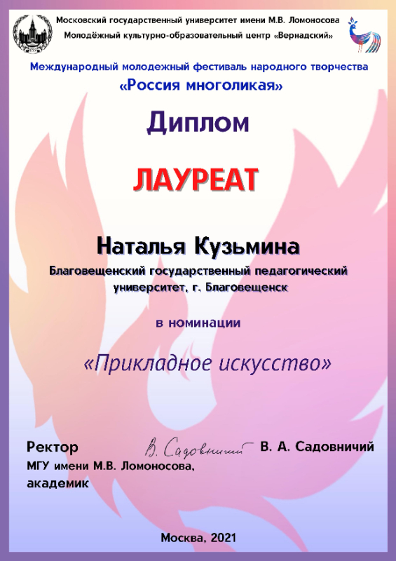 Кузьмина Наталья 4 курс, ЛАУРЕАТ