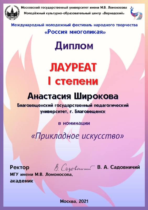 Широкова Анастасия 4 курс, ЛАУРЕАТ 1 СТЕПЕНИ