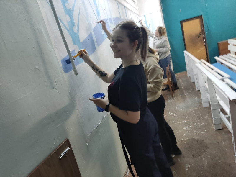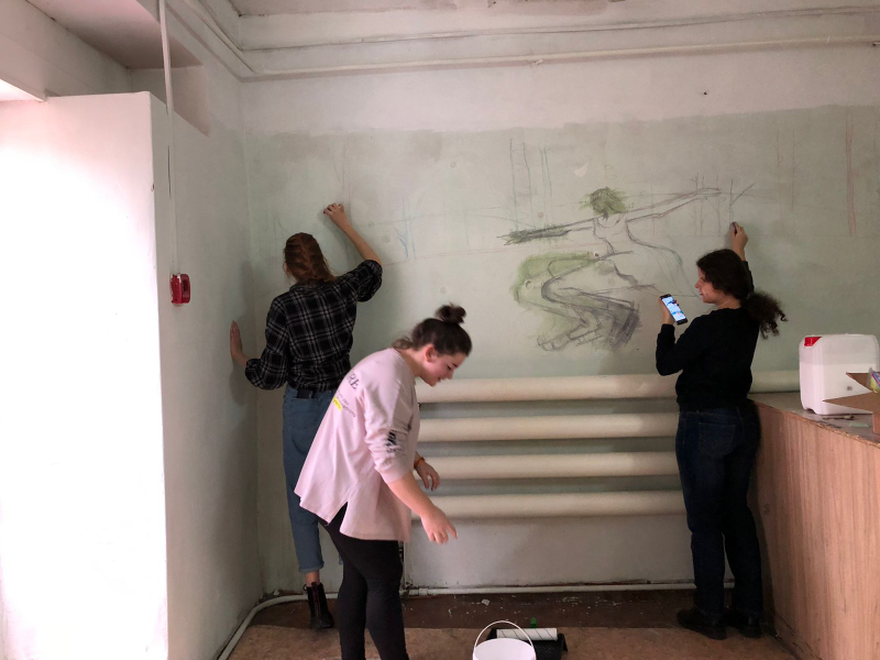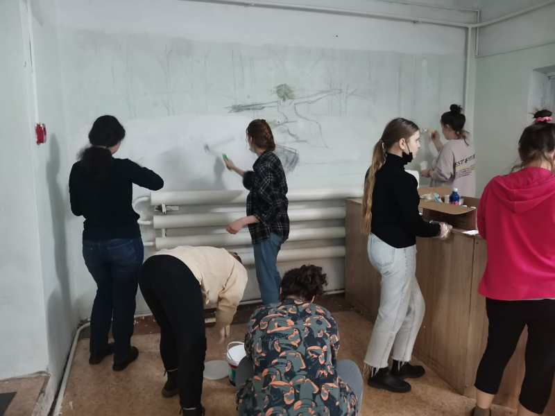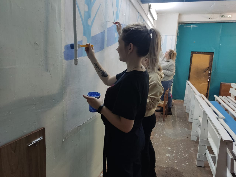 студенты 2-5 курса ИПФ оформили спортивную раздевалку ФКиС, предназначенную для
