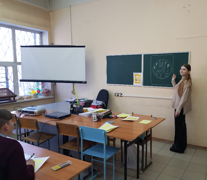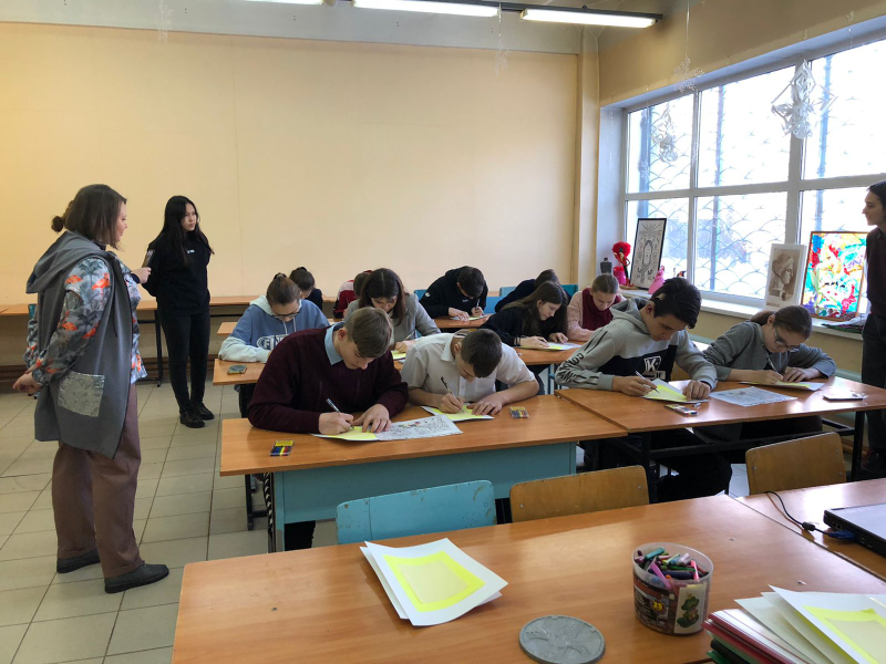 24.01.2022 года в рамках профориентации на кафедре изобразительного искусства и методики его преподавания индустриально-педагогического факультета БГПУ была организованна и проведена встреча с учащимися ГАОУ Амурской области «Специальная (коррекционная) общеобразовательная школа-интернат № 8, г. Благовещенск». Юных гостей встретила и познакомила с жизнью корпуса «Г» заведующая кафедрой Слесаренко Наталья Владимировна. Ребятам провели экскурсию и показали аудитории, в которых проходят занятия по рисунку, ДПИ, акварельной и масляной живописи. Дети посетили выставки учебных работ студентов, обучающихся на очном и заочном отделениях, узнали о специфике учебного процесса, творческих достижениях студентов, а также об особенностях творческих заданий. Экскурсия завершилась мастер-классом «Животные и флора» организованная преподавателем кафедры Копорушко Ниной Анатольевной совместно со студентами 2 курса Адаменко Натальей, Подобед Алёной