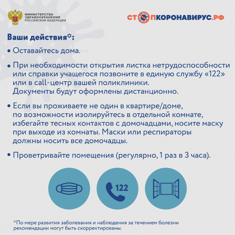 Тревожность населения из-за быстрого распространения коронавируса на сегодняшний день достаточно высокая. И это объяснимо – ежедневная статистика не утешает. Но здесь важно не паниковать. Даже, если вы уже заболели. А вот что действительно нужно делать подскажут рекомендации Минздрава России.