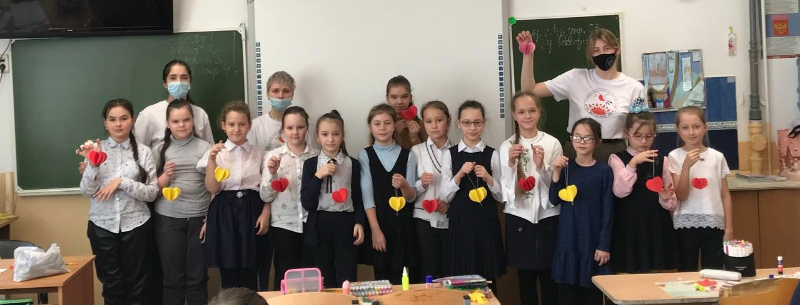 В преддверии дня Святого Валентина, бойцы СПО «Мастера добра» посетили школу №14 г. Благовещенска с мероприятиями, где провели мастер-классы «Валентинка в технике "квиллинг"» и «Объемная валентинка».