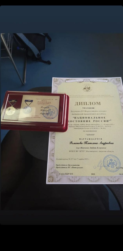 секции «Химия» и получила награду: диплом 1 степени и серебряную медаль за