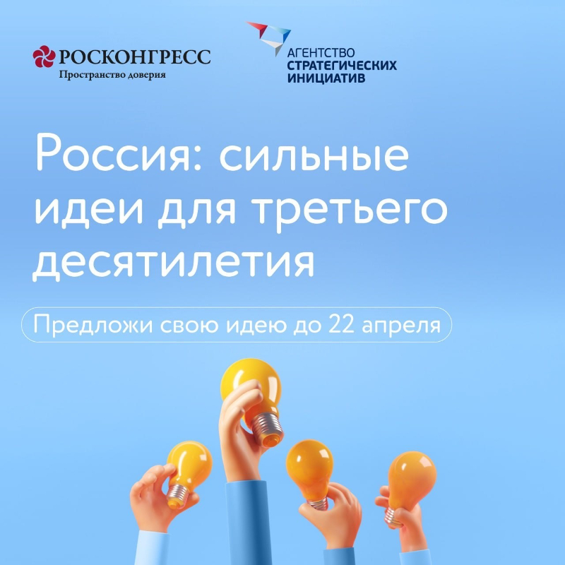 Новостная лентаРоссия: сильные идеи для третьего десятилетияЕсть идея? Пора ее реализовать! Предлагайте идею, которая внесет вклад в развитие страны и достижение национальных целей. Ваши предложения будут обсуждаться на форуме АСИ и Росконгресса «Россия: сильные идеи для третьего десятилетия». 📌 Заявки принимаются на крауд-платформе ссылка до 22 апреля. Здесь каждый может представить свою идею на благо России, получить оценку от лучших экспертов страны, прокачать свой проект и получить комплексную поддержку в реализации. При отборе идей на форум в первую очередь будут оцениваться: ▫️актуальность и значимость ▫️уникальность и инновационность ▫️эффективность по соотношению затрат и результата ▫️наличие грамотного лидера и компетентной команды для реализации Из 1000 лучших идей выберут топ-100. Самые перспективные будут представлены Президенту на очном форуме. Другие новости |