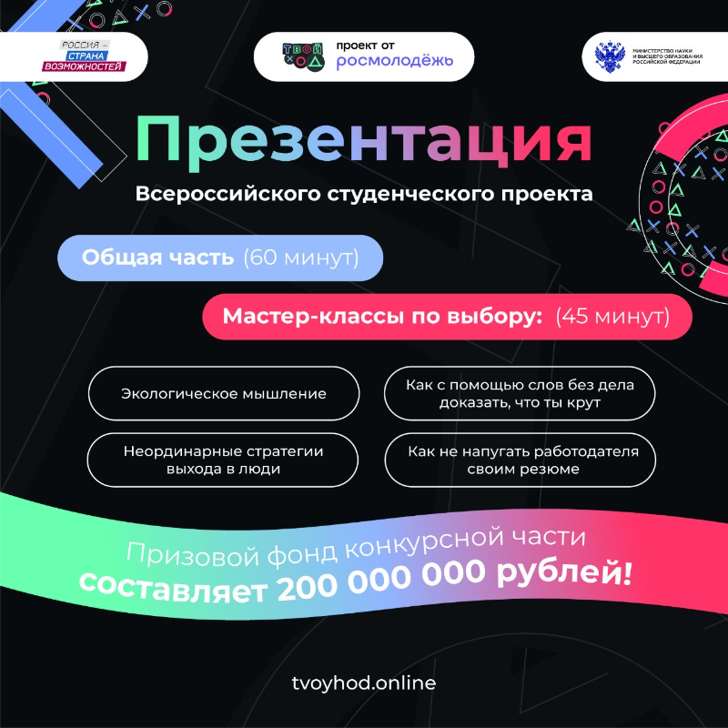 Призовой фонд конкурсной части «Твоего Хода» составляет 200 000 000 рублей,