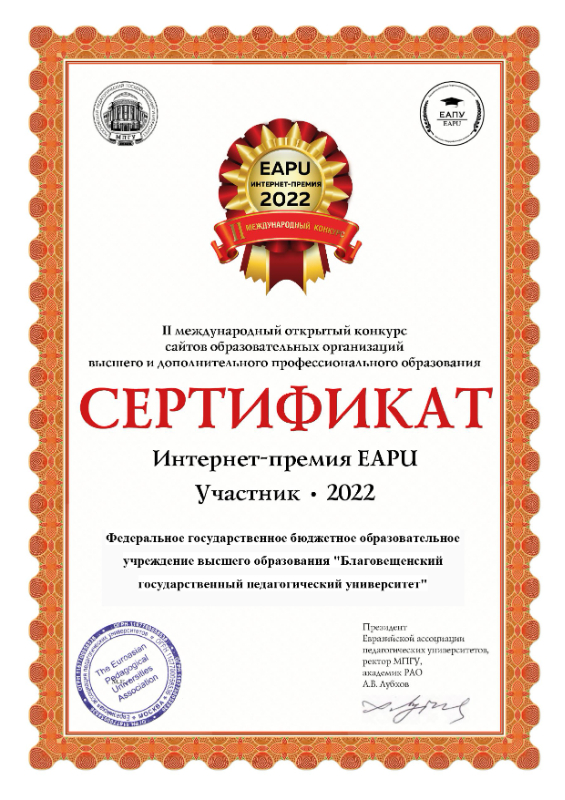 Новостная лента«Интернет-премия EAPU» – 2022Экспертной комиссией в срок с 1 по 31 марта 2022 года была проведена оценка 52 сайтов, которые подали заявки на участие во II международном открытом конкурсе сайтов образовательных организаций высшего и дополнительного профессионального образования, реализующих программы непрерывного педагогического образования в государствах-участниках СНГ «Интернет-премия EAPU» – 2022. В конкурсе приняли участие 52 образовательные организации высшего и дополнительного профессионального образования, реализующих программы подготовки, повышения квалификации и переподготовки педагогических кадров из 5 стран СНГ: Республика Беларусь, Республика Казахстан, Республика Молдова, Российская Федерация, Республика Узбекистан. Для определения победителя Конкурса и призеров по номинациям экспертная комиссия основывалась на системе оценок, описанной в Положении конкурса. В ходе работы экспертами было принято решение об объединении Номинации «За лучшую мобильную версию» и «За самый адаптивный сайт» в одну номинацию «За лучшую адаптацию к мобильным устройствам». Победителем Конкурса сайтов «Интернет-премия EAPU» – 2022 с суммарным итогом 30 баллов стал Нижегородский государственный педагогический университет имени Козьмы Минина. Наш вуз получил сертификат участника. Для БГПУ это первый опыт участия в подобном конкурсе. Все вместе мы в силах сделать наш сайт лучше!