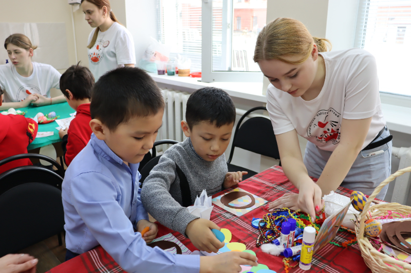 19 апреля 2022 года бойцы студенческого педагогического отряда «Мастера добра» (руководитель Екатерина Сергеевна Шкуркина) в рамках проекта «Пасхальные забавы» провели занятие для слушателей Центра открытого образования на русском языке.