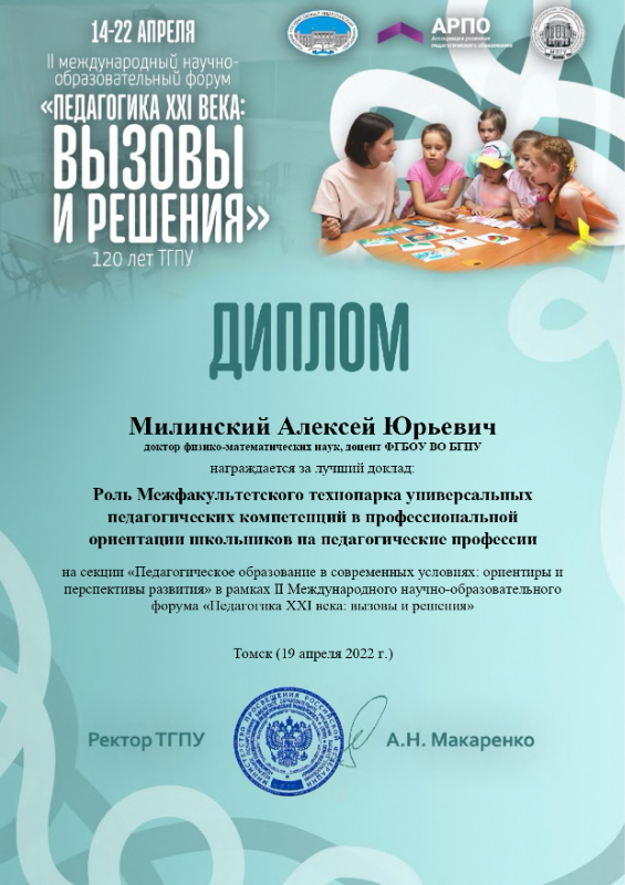 14-22 апреля 2022 года в Томском государственном педагогическом университете состоялся II Международный научно-образовательный форум «Педагогика XXI века: вызовы и решения».