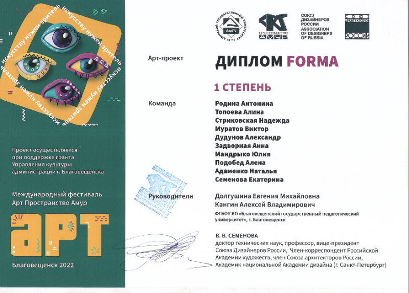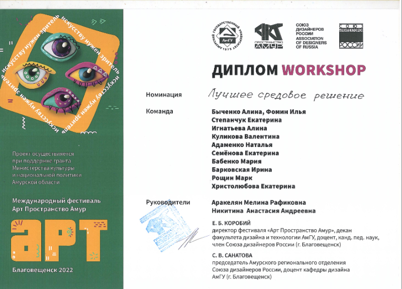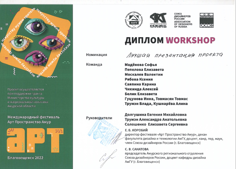проектах в рамках фестиваля «Арт Пространство Амур».