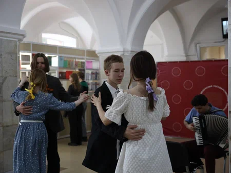 Сегодня в знак вечной памяти и благодарности за великое мужество и самоотверженность советского народа студенты историко-филологического факультета и лицеисты БГПУ кружились под звуки вальса, который танцевали в далеком 1945 году.