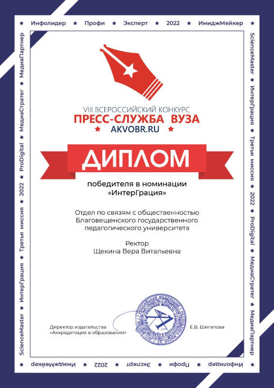 всероссийского конкурса "Пресс-служба вуза" и возможностью регулярных публикаций