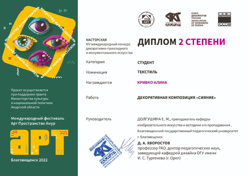 "Текстиль" дипломом II степени была награждена Кривко Алина за работу