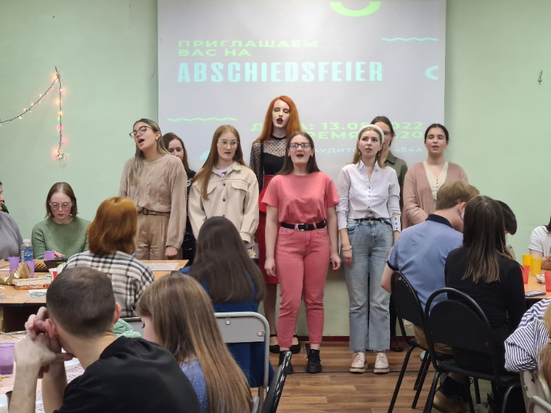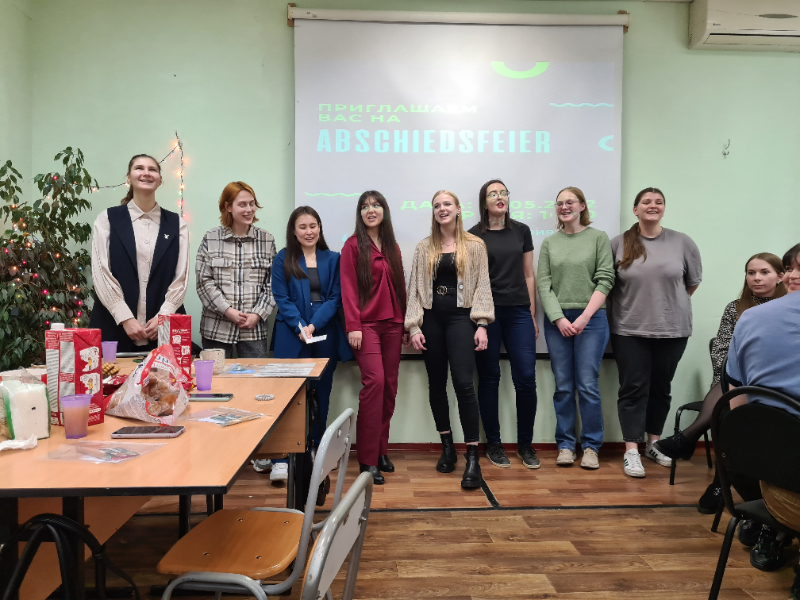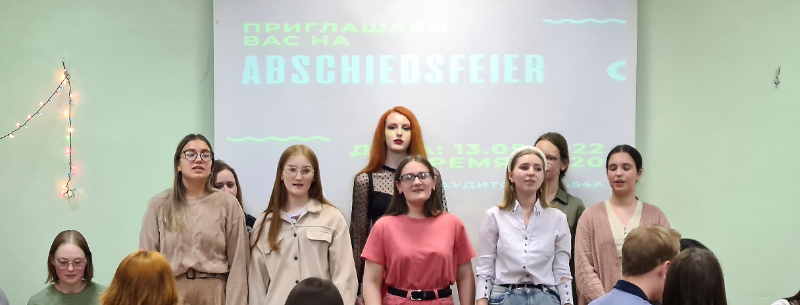 Новостная лентаВ дружеском кругу германистов...Студенты-германисты факультета иностранных языков организовали и провели новый праздник для любителей немецкого языка. Одним из традиционных страноведческих мероприятий, которое многие годы радует студентов-германистов и мотивирует их к новым достижениям в овладении немецким языком, является праздник немецкого Рождества WEIHNACHTEN. В этом учебном году эпидемиологическая обстановка не позволила организовать это мероприятие в рождественские дни, но студенты и преподаватели решили не отказываться от идеи провести долгожданную творческую встречу в дружеском кругу любителей немецкого языка в привычном формате. Неожиданно придумалось и название – MAINACHTEN! – по предложению студентки 5 курса. Организаторы праздника, студенты группы 401ан, разработали сценарий, который напомнил всем присутствующим о ярких, интересных событиях прошедших пяти лет. Это был своеобразный подарок для выпускниц 2022 г. – студенток группы 501ан. На вечере звучали немецкие песни в прекрасном исполнении групп первого, третьего и пятого курсов, студенты второго курса инсценировали учебные юмористические диалоги, показав не только отличное владение немецким языком, но и артистический талант. Живой интерес вызвали конкурсы «Угадай мелодию» (разумеется, немецкую) и «Deutsch in Blago» («Немецкий в Благовещенске»). На мероприятие были традиционно приглашены гости, выпускники прошлых лет – учителя школ (гимназия №1, школа №2) и колледжей г. Благовещенска (Амурского педагогического, Амурского медицинского, Амурского аграрного). Вечер доставил радость и удовольствие всем участникам. «Атмосферно» – поделились своими впечатлениями студенты второго курса.