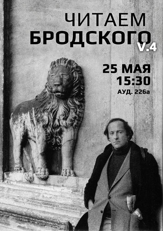 Новостная лента25 мая пройдёт литературный вечер, посвященный памяти И.А. Бродского«Читаем Бродского: V. 4» — уникальное мероприятие об исключительном человеке. В среду 25 мая в 15:30, в аудитории 226а прозвучат своеобразные, ни на что не похожие, стихотворения выдающегося человека XX века. Организатор: Зоя Анатольевна Романова. Проводят: Студенты и выпускники Историко-филологического факультета. Посетить мероприятие может любой желающий.