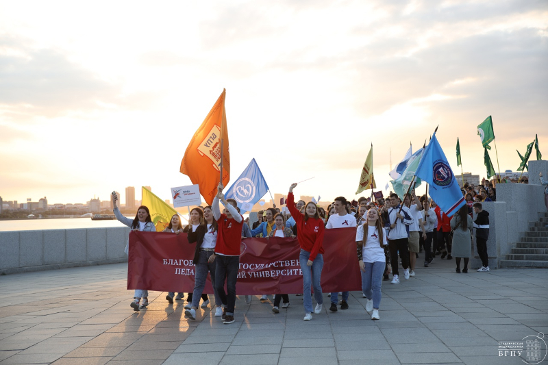 16 сентября прошел «Парад студенчества», посвященный началу учебного года. В параде приняли участие 5 вузов и 9 колледжей города Благовещенска.
