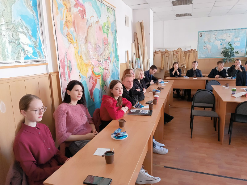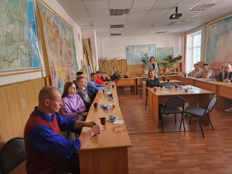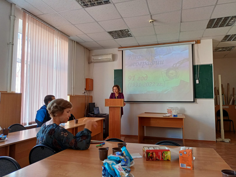 Заведующий кафедрой географии Репринцева Ю.С. рассказала историю возникновения и современное состояние кафедры географии, вспомнили ветеранов кафедры и познакомились с современным составом преподавателей. Каждый преподаватель представил информацию о себе, наглядно показал своё хобби во внерабочее время, порой удивляя студентов. Студенты задавали интересующие их вопросы преподавателям.
