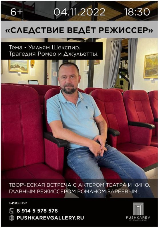 Побывать на расследовании – возможность редкая, все равно что поприсутствовать на следственном эксперименте. Редкий шанс выпадает везунчикам. Но! Есть приглашение для самых любопытных на судебное заседание 4 ноября в 18:30 по адресу ул. Мухина, 114, 1 этаж в «Pushkarёv Art Gallery» пройдут слушания по делу организатора двойного убийства, небезызвестного У. Шекспира, по факту изложенной им в признательных показаниях трагедии «Ромео и Джульетта». Виновный осознал очевидное и в своем ответном слове в суде подчеркнул, что «нет повести печальнее на свете…»