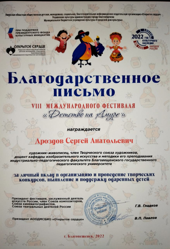 педагогических наук, художник-живописец Дроздов Сергей Анатольевич.