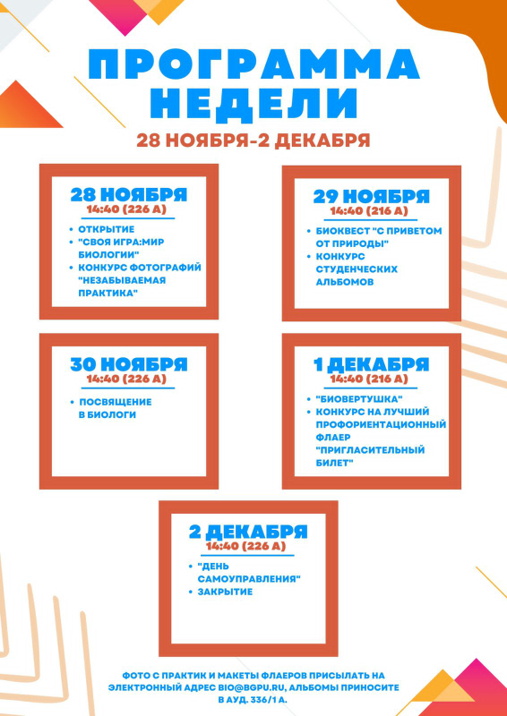 На кафедре биологии и методики обучения биологии с 28 ноября по 2 декабря проводится Неделя биологии.
