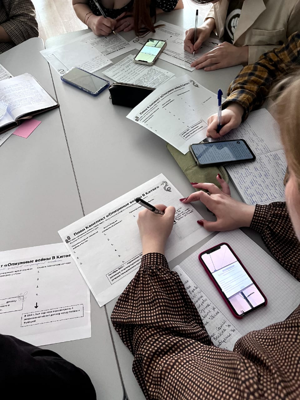 Новостная лентаУрок-мероприятие28 февраля на базе Межфакультетского педагогического технопарка универсальных педагогических компетенций состоялось интересное занятие по теме: "Опиумные войны в Китае". Мероприятие было проведено в рамках изучения дисциплины "История стран Азии и Африки" для студентов группы 3 "Г" ИФФ с участием членов студенческого научного общества. В ходе урока-мероприятия была представлена теоретическая часть по данной теме, а затем студенты приняли участие в интерактивах игровой формы, а также справились с заданием с исторической картой. «В целом задумка была такова: участники - это исследователи, и в конце их "исследования" они получили награду в виде подборки фильмов и книг по изучаемой теме. Мы ориентировались на открытый урок в формате путешествия. Вначале был организационный момент, затем элемент повторения прошлой темы, немного новой теории – все, как на уроке. А потом уже были игры: нужно было разгадать слово, составив его из букв, которые участники получали, отвечая на вопросы. Это была командная работа. Затем надо было поработать с картой, показав на ней город. Это была индивидуальная форма работы. Все это заняло примерно 1 час 15 минут. А потом рефлексия. Вот так всё и было», - поделились своим видением данного мероприятия участники СНО. Участники были увлечены и дали положительные комментарии. Преподаватель истории стран Азии и Африки, Дмитрий Владимирович Буяров, также по достоинству оценил данное мероприятие.