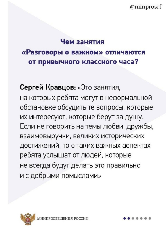Интервью прошло в прямом эфире после внеурочного занятия «Разговоры о важном», которое сегодня в московской школе № 1501 провёл сам министр.