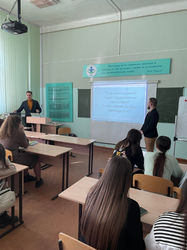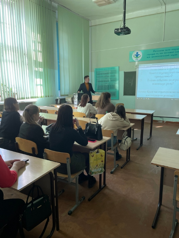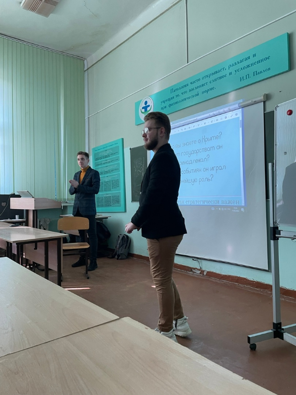 Ко Дню Воссоединения Крыма с Россией студенты ИФФ, по совместительству члены Студенческого научного объединения, Пустоленко Станислав и Пиллер Илья провели лекцию про историю полуострова Крым для групп Факультета педагогики и психологии.