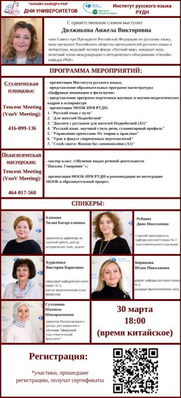 мероприятий «Дни университетов» на базе онлайн-кафедры РКИ создаст условия для
