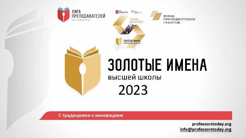 Высшей Школы» проекта «Золотые Имена Высшей Школы», который включает Всероссийский конкурс преподавателей вузов,