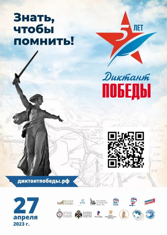Новостная лентаПриглашаем принять участие в Диктанте Победы 2023Диктант Победы 2023 — акция в рамках празднования Дня Победы. Диктант Победы 2023 это Всероссийская акция, проведение которой запланировано на 2023 год. Впервые она была организована в 2019 году наряду с рядом иных акций, проведение которых осуществляется по всей стране. Диктант Победы 2023 — одно из тех мероприятий, которое позволит прикоснуться к исторической памяти, попробовать свои силы и узнать новое о прошедшей войне и её героях. Кто может принять участие в акции? Так как она является всероссийской, принять участие в ней может любой желающий житель России, но не только. Участвовать в акции могут и граждане других стран, причём не только те, кто находится на территории России, но и те, кто пребывает за её пределами. Это возможно благодаря тому, что принимать участие в написании диктанта можно удалённо в режиме онлайн, для чего потребуется доступ к официальному сайту либо приложению Диктант Победы. Не предусматривает участие в мероприятии и возрастных ограничений, то есть участником может стать человек любого возраста. Каждому участнику Всероссийской акции Диктант Победы 2023 выдаётся диплом, в котором указывается количество набранных баллов, а также время, затраченное на ответы. Такой диплом оказывается доступным для скачивания в личном кабинете участника после того, как становятся доступными результаты прохождения теста. Для тех, кто принимает участие в акции в режиме онлайн, диплом в котором указывается количество набранных баллов и время на ответы, может быть скачан сразу же после того, как будет завершено прохождение теста. Для скачивания диплома достаточно обратиться в личный кабинет. Для тех, кто поступает в вуз 2023 году, важным является вопрос и о том, как получить дополнительные баллы при поступлении. Такое право имеют только те, кто принимает участие в акции на региональной площадке и набирает максимальное количество баллов. В таком случае на сайте диктантпобеды.рф в личном кабинете участника заявителю потребуется заполнить форму заявки на получение диплома финалиста Диктанта Победы. Получение всей необходимой информации об акции Диктант Победы, которая проходит ежегодно с 2019 года, можно получить на её официальном сайте . Здесь можно ознакомиться с ответами на часто задаваемые вопросы, посмотреть имена победителей разных лет, ознакомиться с проектом «Историческая память». Здесь же доступны медиа (фото и видео), новости, статьи и анонсы. Здесь же возможно прохождение тестов текущего года, а также предоставляется возможность пройти тренировочные тесты. Дата проведения очного Диктанта Победы в БГПУ — 27 апреля в 15:00:00 по местному времени. О том как зарегистрироваться и принять участие в Диктанте Победы смотри на официальном сайте Другие новости |