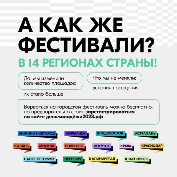 Новостная лентаПроведи День молодежи яркоПремии губернатора и стипендии им. Н. Н. Муравьева-Амурского вручат активистам региона в День молодежи Чуть больше месяца осталось до главного события лета — Дня молодежи. Амурчане отметят его 24 июня. Это праздник почти трети населения области: в регионе живет 220 тысяч человек от 14 до 35 лет. Яркие мероприятия в этот день пройдут по всей стране. Впервые в истории праздник отметят на борту самолёта, в тематическом поезде, на станции метро и на палубе теплохода! Листайте карточки — там мы обо всем подробно рассказали Поучаствовать в необычных форматах может каждый по предварительной регистрации на сайте деньмолодежи.рф . Она доступна с 12 мая по 24 июня. В 14 регионах страны пройдут насыщенные фестивали. Трансляцию любого из них можно увидеть в официальной группе Росмолодёжи в ВК.