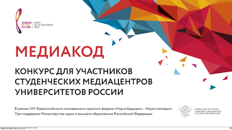При поддержке Минобрнауки России в рамках VIII Всероссийского форума «Наука будущего – наука молодых» с 17 мая до 10 сентября 2023 г. пройдет конкурс «МЕДИАКОД».
