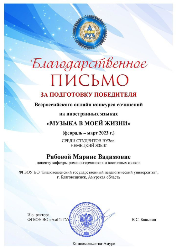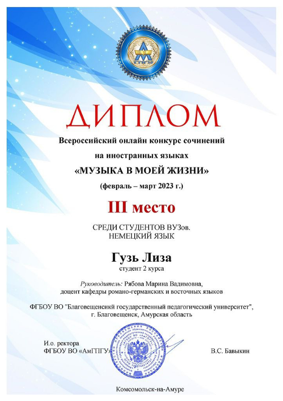 иностранных языках «Музыка в моей жизни» был организован ФГБОУ ВО «Амурский