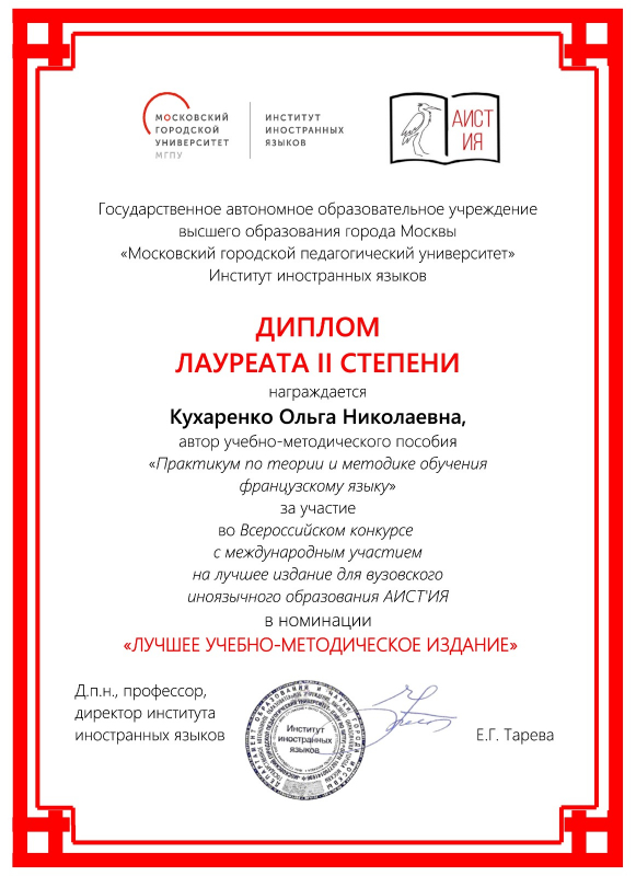 методике обучения французскому языку» стало лауреатом 2 степени в номинации