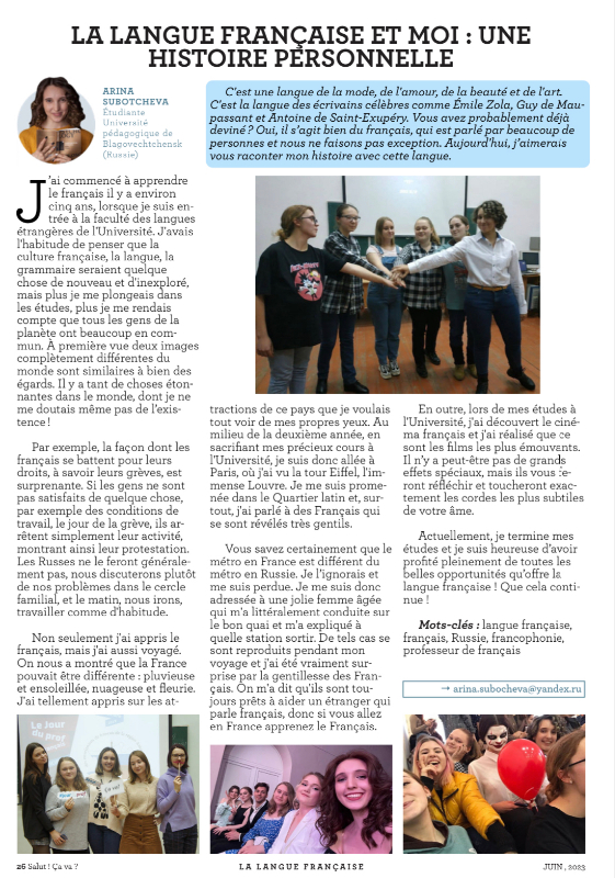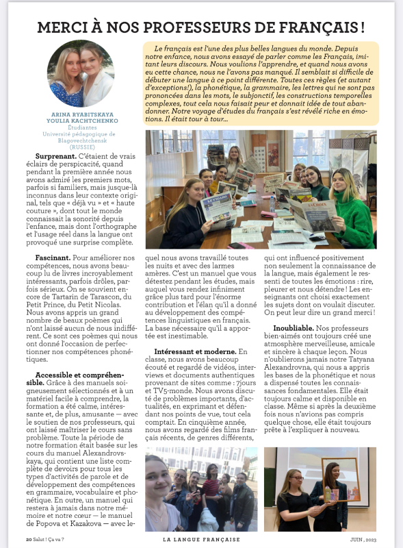 БГПУ на французском языке «Salut! Ça va?» посвящен искусству, истории, интересным событиям
