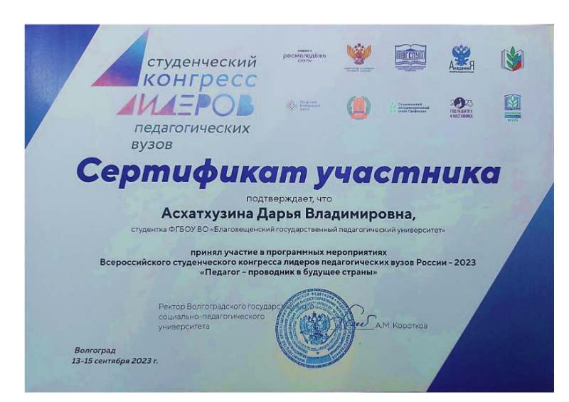 государственный педагогический университет представили три студентки: Асхатхузина Дарья, студентка 4 курса