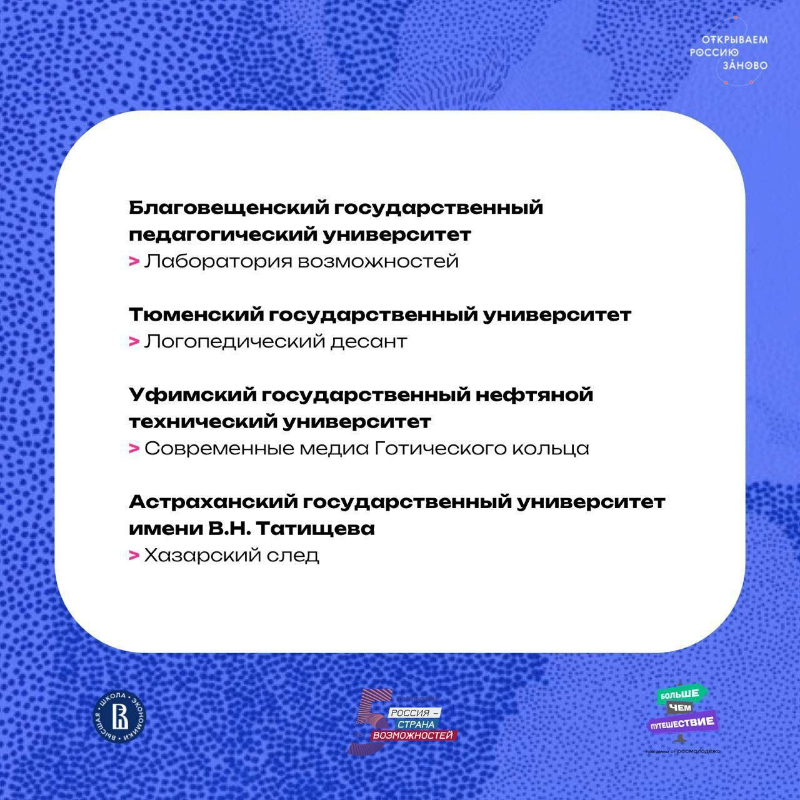 Определены победители спецконкурса на проведение экспедиций от «Открываем Россию заново» 8 вузов-пилотов отправятся в проектную или исследовательскую экспедицию и решат задачи стратегического развития одного из регионов России.