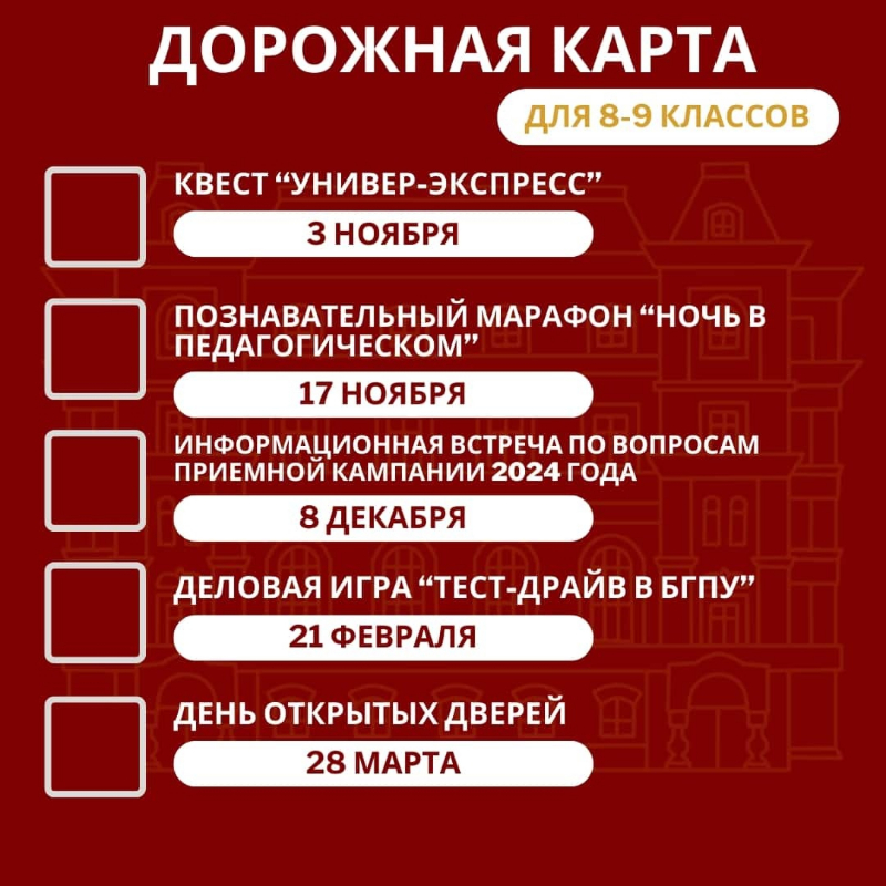 Специалисты отдела профориентационной работы совместно со студенческим педагогическим отрядом «Ориентир» предлагают возможность провести выездную студенческую педагогическую экспедицию «Открываем возможности» в твою образовательную организацию, во время которой познакомим тебя с особенностями университета, правилами приемной кампании 2024 года, а также студенческой жизнью. Ты и все твои друзья получат информацию об особенностях поступления и специфике обучения в БГПУ, а также контакты ответственных факультетов и подразделений, ссылки на информационные источники.