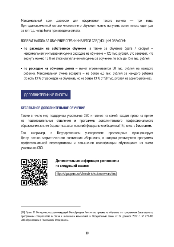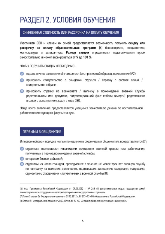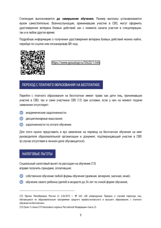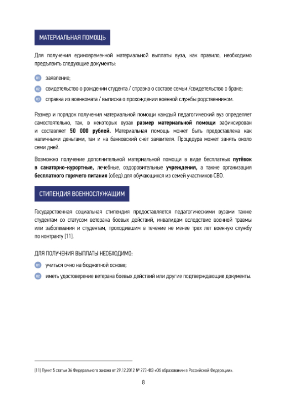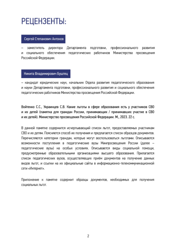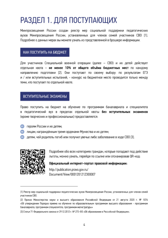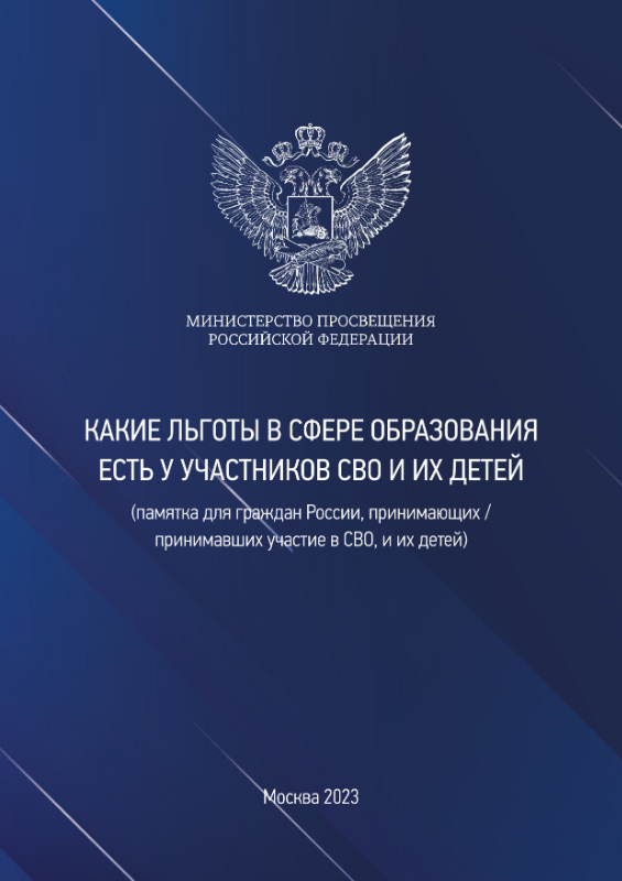 Департамент подготовки, профессионального развития и социального обеспечения педагогических работников Минпросвещения России в рамках исполнения Перечня поручений по итогам встречи Президента Российской Федерации с матерями военнослужащих-участников специальной военной операции от 2 января 2023 г. направил разработанную просветительскую брошюру для граждан, принимающих/принимавших участие в специальной военной операции, а также их детей («Какие льготы в сфере образования есть у участников СВО и их детей»).