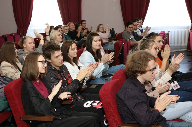 17 октября в Актовом зале БГПУ состоялся разговор учителей о призвании: встретились успешные молодые педагоги города Благовещенска, выпускники БГПУ - Александр Евгеньевич Раков и Алла Анатольевна Харечко, и наши студенты 4 курса историко-филологического, естественно-географического, физико-математического факультетов, а также факультета иностранных языков и факультета физической культуры и спорта.