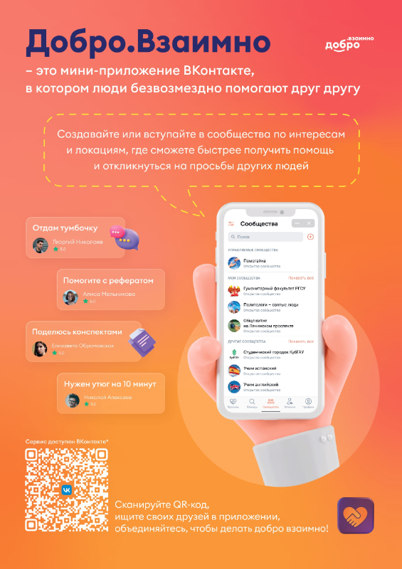 Новостная лентаЗапущен сервис Добро.ВзаимноЗапущен сервис Добро.Взаимно. Сервис представляет собой приложение Добро.Взаимно и объединяет