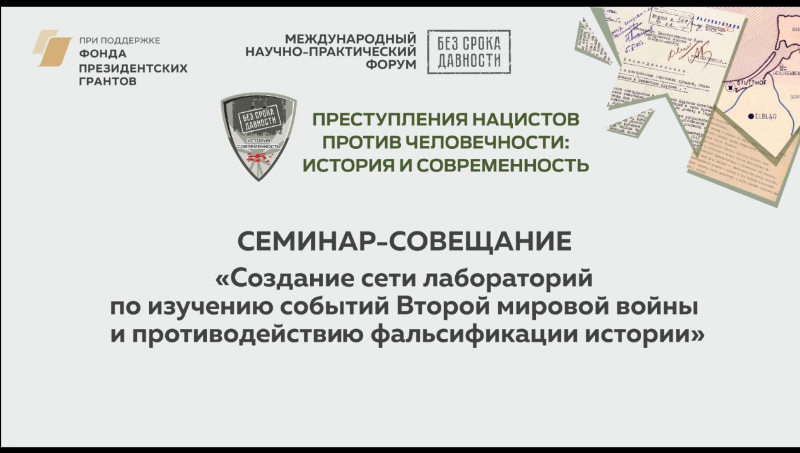 В рамках Международного научно-практического форума "Преступления нацистов против человечности: история и современность", который проходит в городе Светлогорск (Калининградская область), 25 октября 2023 г. состоялся Семинар-совещание «Создание сети лабораторий по изучению событий Второй мировой войны и противодействию фальсификации ас истории».