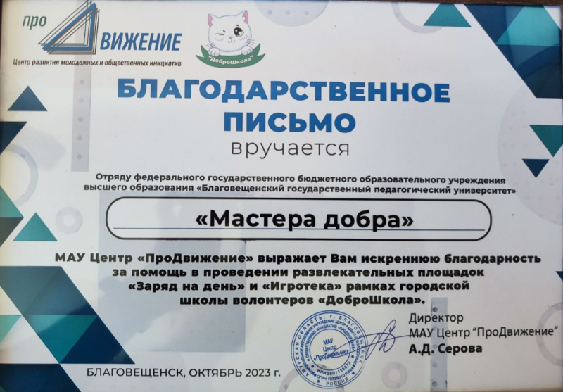 Большое спасибо МАУ Центру "ПроДвижение" ДоброШкола за предоставленную возможность!