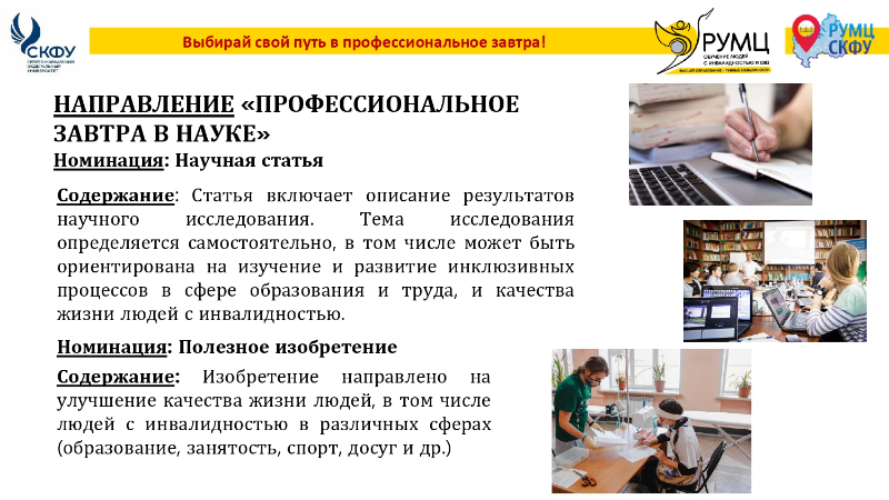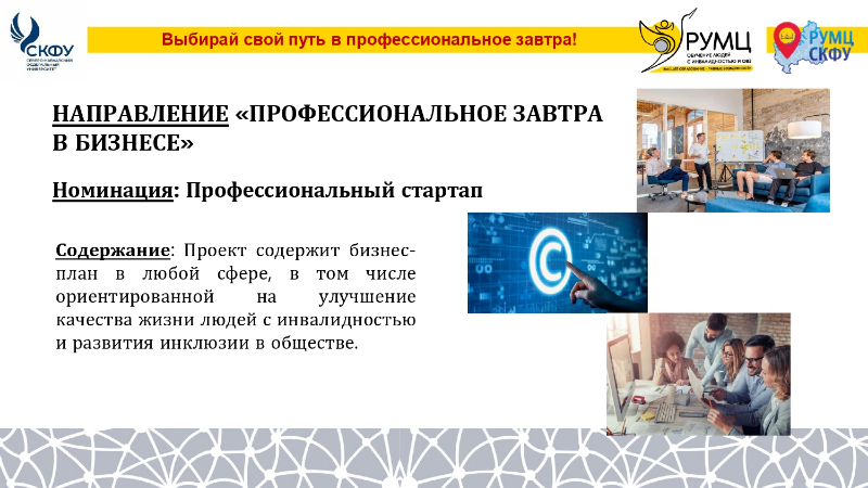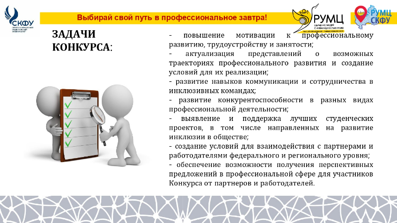 «Конкурс «Профессиональное завтра» стал брендом сети РУМЦ высшего образования. Для участников — это, прежде всего, площадка для прямого взаимодействия с партнерами и работодателями. Участие в конкурсе дает молодым людям возможность не только овладеть квалифицированной профессией и расти в ней, но и найти себя в науке, в бизнесе, в общественной деятельности или в менеджменте, способствует формированию у студентов инклюзивной культуры, мотивации и компетенций для профессионального развития и трудоустройства. Наша задача заключается в том, чтобы создать условия для профессионально-ориентированного сотрудничества в инклюзивных командах, обеспечив взаимодействие с потенциальными работодателями», — отметил заместитель Министра науки и высшего образования РФ Дмитрий Афанасьев.