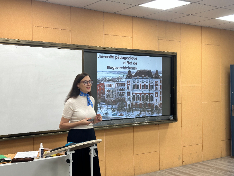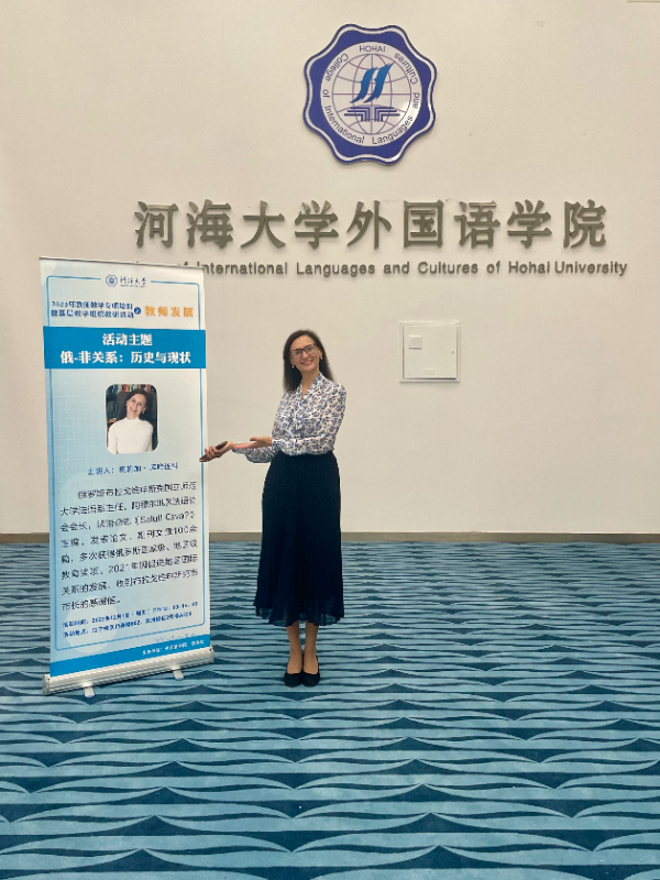 А в декабре этого года доцент кафедры романо-германских и восточных языков БГПУ О.Н. Кухаренко по приглашению китайского профессора провела лекции для студентов двух университетов. На французском языке Ольга Николаевна рассказала китайским студентам и преподавателям об истории и современности российско-африканских отношений, завершив беседу анализом актуальности сотрудничества Китая и России на африканском континенте.