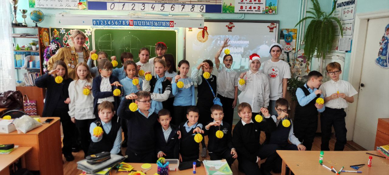 Школьники читали стихотворения, участвовали в новогодней викторине. Под чутким руководством наших мастеров научились делать объемные елочные игрушки из бумаги. Этими игрушками ребята украсили ёлку дома и в классе.