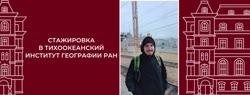 С 20.11.2023 г. по 02.12.2023 г. студент 4 курса профиль «История», профиль «География» Черных Евгений Сергеевич проходил научную стажировку в Тихоокеанском институте географии Дальневосточного отделения Российской Академии наук.
